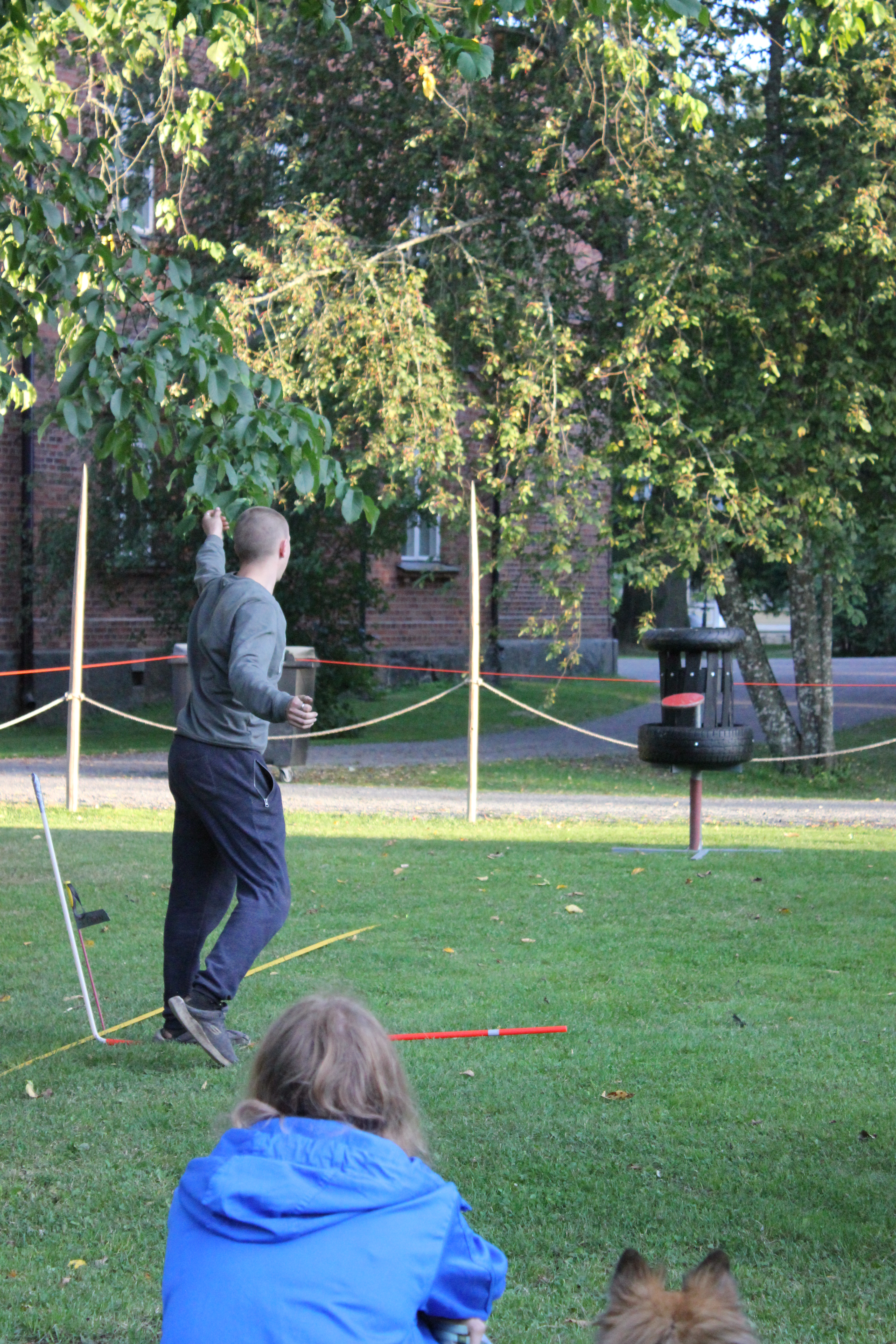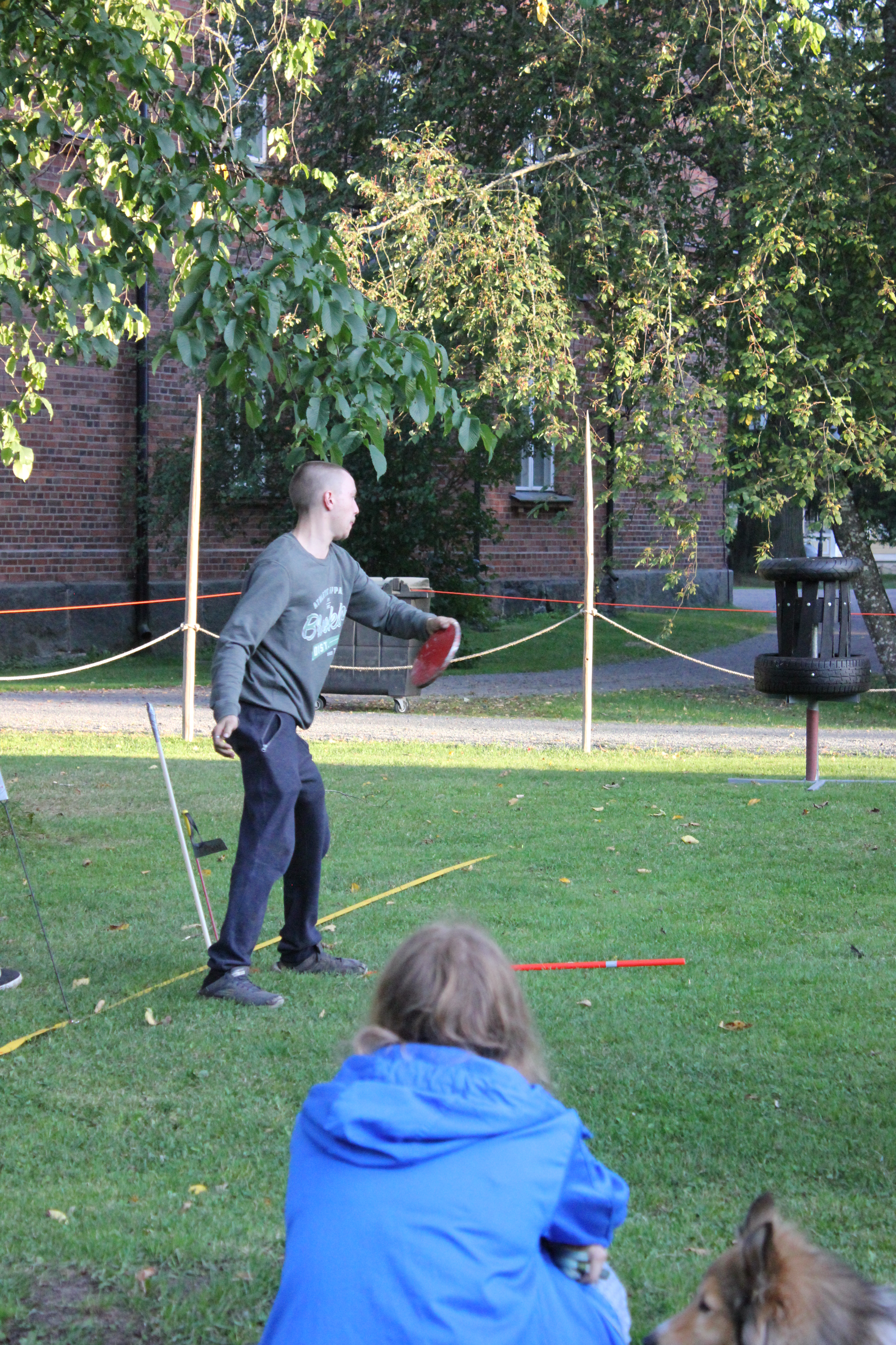 Alla kuvasarja rautaisen frisbeen lennosta koriin