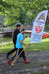 Rautakankikävely on sauvakävelyn rautaisempi muoto, jossa kävelysauvojen tilalla ovat 6,5 kg painavat rautakanget (kuva) ja jalassa 1,5 kg painavat turvasaappaat (kuva). Kuten nimikin kertoo, kyseessä on kävely, toisen jalan pitää olla aina maassa (kuva) ja polven ojentua ns. hiipiminen johtaa ragaistukseen. Turvallisuus syystä kävely etenee diagonaalityylillä, jolloin vastakkaisen puolen käsi ja jalka ovat samanaikaisesti edessä tai takana (kuva). KKY varaa joukkueille kanget ja saappaat. Varusteet ovat joukkueen yhteiset, ne siis vaidetaan seuraavalle viestinviejälle.